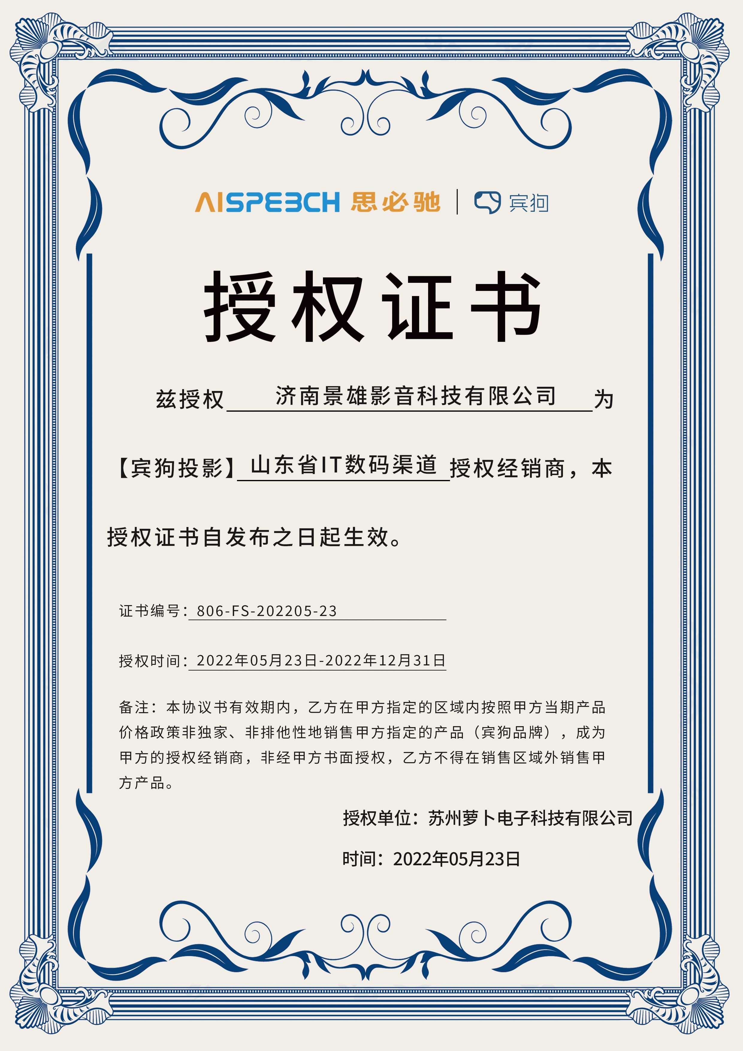 現(xiàn)以成為松下、夏普、日立、宏碁、索尼、愛普生、日本愛其投影機山東省的核心分銷商;美國MK-SOUND、英國戈樂迪(GOIDROAD)家用音響山東省總代理;香港經(jīng)科、美國億立幕布山東總代理。