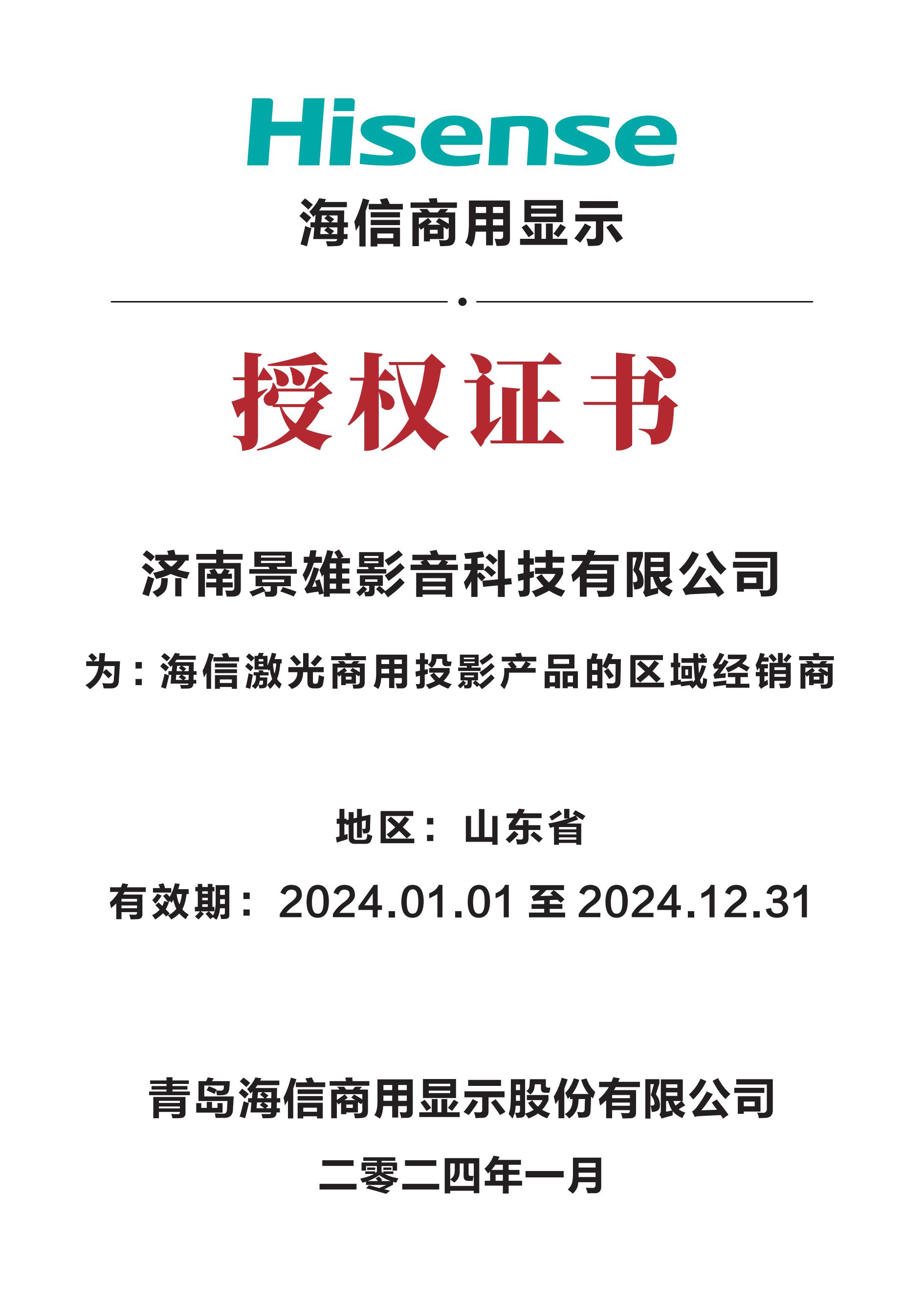 濟南景雄影音科技有限公司是山東省的知名IT企業(yè)。 公司成立以來一直致力于多媒體投影系統(tǒng)及其周邊器材的營銷服務。同時承接多媒體教室、專業(yè)(3D)家庭影院系統(tǒng)方案、音視頻會議系統(tǒng)、大屏幕投影拼接等工程的方案規(guī)劃、產(chǎn)品銷售、安裝調試、保修及維修業(yè)務。